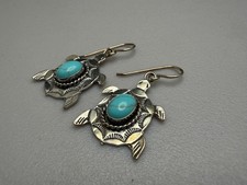Beautiful Sterling Silver & turquoise turtle earrings Weight: 6.3g Measurements: 1-1/4" by 3/4" Stones: Turquoise Marked: Sterling ALL Jewelry has been professionally tested and confirmed. **Please see all pictures** Combined shipping available, *Returns accepted* International Buyers Please Note: Import duties, taxes, and Customs charges are not included in the item price or shipping cost. These charges are the buyer's responsibility. Please check with your country's customs office to determine what these additional costs will be prior to bidding or buying. If you're an out of country buyer please keep in mind that international shipping has been taking longer than expected (Inventory SW Style Tray)