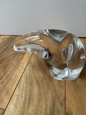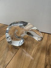 Very nice clean design. This is a very elegant piece of Steuben and difficult to find. Bottom/Base wear consistent with age and most used glass. No box or bag. Signature is on the right rear. It is 100% Steuben. Approx. 7.5" Long x 5" Tall x 3" Wide Shipping with insurance will cost approximately $26