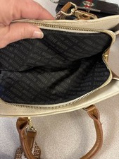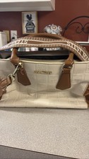 Steve Madden Embossed Logo Satchel Crossbody Bag Cream Brown Purse