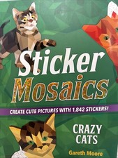 Sticker Mosaics: Crazy Cats by Gareth Moore. Create geometric cat artwork using numbered stickers. Includes 12 unique mosaic projects and over 1,800 stickers. • Author: Gareth Moore • Title: Sticker Mosaics – Crazy Cats • Includes 1,842 stickers • 12 mosaic projects • Great for kids, teens, and relaxing craft activities Book is in good condition. Please see photos for details.