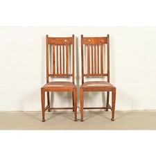 Stickley Brothers Style Antique English Arts & Crafts Oak Side Chairs, Pair