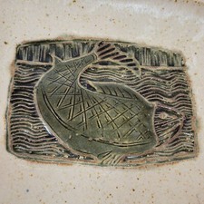 Stoneware Hand painted Big Fish Pottery medium tray platter padded feet green