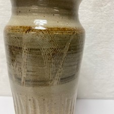 Stoneware Signed Vase Beige Earthy Glaze Textured Vertical Lines Art Pottery