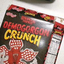 Stranger Things Collector Cereal Box Kelloggs Demogorgon Crunch BOX ONLY This is only the box. No cereal. Great collectors item! There may be some wear on the corners due to storage and normal wear. This is a pre-owned item and sold as is Please look at all photos thoroughly before purchasing and as part of the description Please ask any questions it's truly no bother