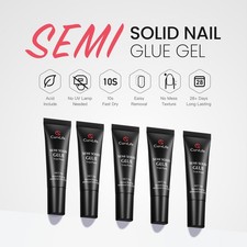 's newly upgraded quick-drying 10g solid nail glue paired with 10ml nail polish remover is suitable for nail pieces, requiring no UV light, providing long-lasting false nail set gel. This nail glue is suitable for nail pieces.