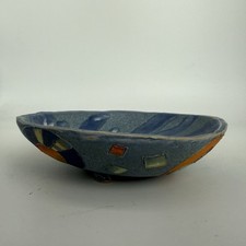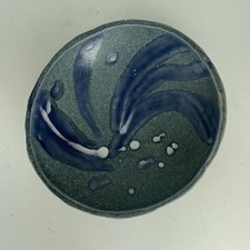 Studio Art Pottery Blue Bowl Plate Dish SIGNED Handmade By Sharon Artist OOAK From a smoke free home. Excellent condition