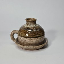 Studio Art Pottery Hand Thrown Rustic Brown Speckled Drip Glaze Ceramic Oil Lamp