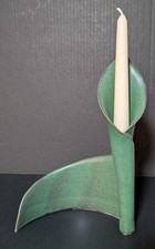 Studio Pottery Calla Lilly Candle Holder/Bud Vase Forest Green Artist Stamped
