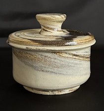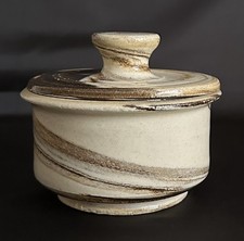 Studio Pottery Hand Thrown Ceramic Pot With Lid Neutral Colors-Brown, Tan, Beige