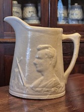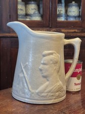 STUNNING Antique LINCOLN LOG CABIN White Stoneware Pitcher Yellow Ware No Blue