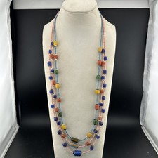 This stunning necklace features beautiful glass beads in a vibrant multi-color palette.
