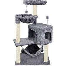 The hanging hammock is a cozy spot for cats to relax and sleep. And it can be removed and washable. Material: Sisal. Overall size:22.44"x13.78“x39.37"H. The big base board can increase cat tree's stability.