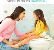 Calm your little one's fears of falling in the big toilet with Munchkin sturdy potty seat. The easy-to clean potty seat fits most standard toilets (may not fit the elongated toilets) and is contoured to hold your child securely in place.
