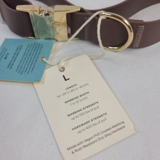 Designed with durability and comfort in mind, this waterproof and odor-resistant dog collar features rust-resistant hardware and a quick-release buckle for convenience. • Adjustable length: 16–24 inches • Webbing width: 1 inch (2.5 cm) • Webbing strength: Up to 750 lbs of pull • Hardware strength: Up to 450 lbs of pull • Vegan PVC-coated webbing