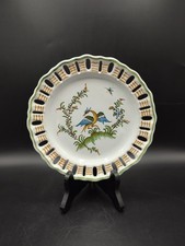 Une assiette décorative de Moustiers reflète l’élégance de la faïence provençale traditionnelle. Le décor, léger et raffiné, laisse une grande place au blanc, caractéristique du style de Moustiers. Poids : 375 g.