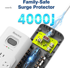 6 widely spaced surge protected outlets for bulky plugs and other 6 vertical outlets for regular plugs. Multiple outlet wall plug with overload protection to prevent spikes and fluctuations. The over current protection switch limits the electrical outlet's working current within a certain setting, so it will not get hot during usage.
