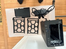 Like new connected but never really loaded data as had others Works great. Tested right before listing. Buy with confidencr Includes nas box, power plugs, no hard drives included- being sold separately.
