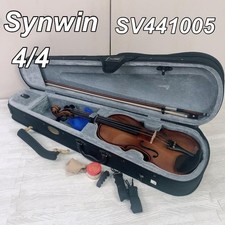 Color: Traditional violin wood finish. The violin is in good condition with no noticeable scratches or major wear. There are minor signs of use such as slight scuffs and dirt consistent with regular playing.