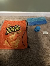 Brand new takis promotional bag and items. I have done a lot of research on this and I can’t find any information on this online or even a listing at all. They were giving these away at a Walmart when I got these but I can’t find anything on this event taking place. The items are brand new, a drawstring bag, a fuzzy hat, a squishy cowboy hat, and a little tattoo This is a super rare find for a collector or just someone who loves takis