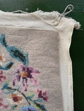 Beautiful vintage tapestry panel. Completed wool floral bouquet tapestry. Ideal for furnishing project, framing, bag panel etc. In excellent condition. fraying to aida. measures approx 29cm x 32cm square