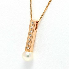 Tasaki Necklace K18PG Pearl 7.3mm Diamond 0.11ct 45cm Used Number A 157952