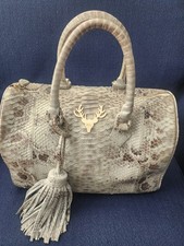 For sale is snake skin top handle handle bag in great condition. This bag is modified removed the long strap so it does not come with long strap. There's small minor stain inside the pocket. From pet-free and smoke-free home.