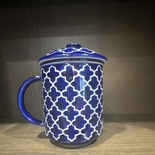 Teavana Geometric Blue Ceramic Stoneware Teacup Infuser with Lid