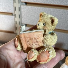 This vintage Cherished Teddies figurine titled "Teddy & Roosevelt" commemorates "The Book Of Teddies" from 1903-1993 by P. Hillman. Manufactured in 1993 in China, this bear figurine is a nostalgic piece for collectors of bear figurines and miniatures.