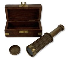 Telescope Spyglass 6-1/2" Brass with Wooden Box