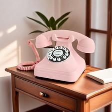 TelPal Pink Retro Corded Landline Phone, Push Button, Basic Analog Telephone