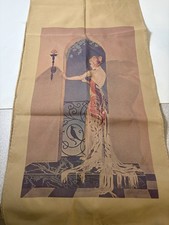 vintage textile decorative piece featuring a 1920s Art Deco illustration, "Le Grand Décolletage" by French illustrator Georges Barbier.