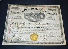 The Gold Placer Mining Company 1880 stock certificate