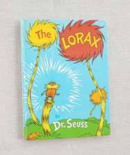 "The Lorax" by Dr. Seuss. The book is in excellent shape and has been well-loved. Ex libris with a writing on the inside of the front cover.