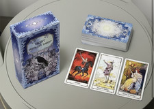 Step into a world where the echoes of the soul find a voice in the stillness. Wrapped in a palette of cool indigos, soft violets, and stark midnight blacks, this deck features intricate illustrations of corvids, withered flora, and celestial symbolism.