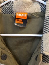 Thirtytwo Mens Rider Driven snowboarding jacket, size medium. Jacket is fairly lightweight with fleece out and nylon lining; front panel pockets and 2 interior pockets; snap closure; beige/black plaid. Pre owned but in good condition.