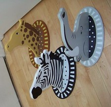 Three animal clothes wall hangers elephant giraffe zebra 11" tall 10" deep 6"