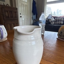 Tilot White Blue Ceramic Glossy Pottery Pitcher Floral Handles Handwritten