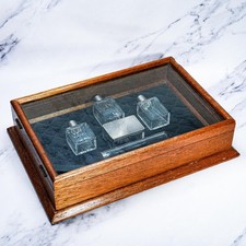 Timeless Antique Oak Wood Display Case with Glass Top Velvet Lining Showcase Box