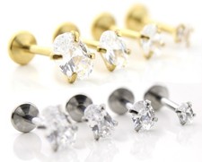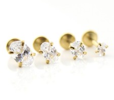 Tiny Oval Tragus Stud Earring Threadless Flat Back Cartilage Labret Piercing