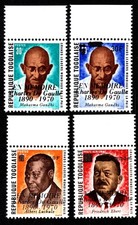 30F Gandhi Overprinted En Memoire Charles De Gaulle 1890-1970, 90F Gandhi Overprinted 30F En Memoire Charles De Gaulle 1890-1970, 20f Albert Luthuli Overprinted 150F En Memoire Charles De Gaulle 1890-1970 and 60F Fredrich Ebert Overprinted 200F En Memoire