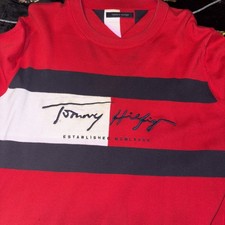 Tommy Hilfiger Crewneck Sweater Red/Blue Wool Blend, Long Sleeve, Size Large