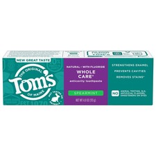 Promote a clean, bright, healthy smile with Tom’s of Maine Whole Care Natural Toothpaste with Fluoride. Plus, the mint toothpaste features an updated formula that tastes great and leaves your mouth clean and fresh with its spearmint flavor.