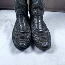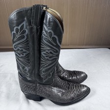 Vintage Tony Lama western cowboy boots featuring genuine python snakeskin vamp and classic stitched leather shafts. These boots showcase the distinctive scale pattern and natural texture associated with exotic python leather. Style: Y6015 Size: Men’s 9.5D Material: Genuine python snakeskin vamp with leather upper shaft. Condition: Pre-owned with normal wear from use including creasing and light wear to the soles and heels. Structurally solid with plenty of life remaining. Please review photos for condition details. Classic exotic western boots perfect for collectors, western wear enthusiasts, or everyday cowboy style.