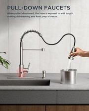 Touchless Kitchen Faucet. Sleek Spring Faucet: Designed to USA/CAN standards and certified to DOE, NSF/ANSI/CAN 61 and lead-free standards, this kitchen sink faucet features an easy-to-use curve and a premium, low-maintenance coating that prevents water spots and fingerprints.