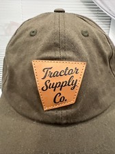 Leather Patch Olive Green Hat Cap Cotton Strap Buckle EUC.