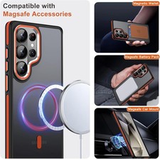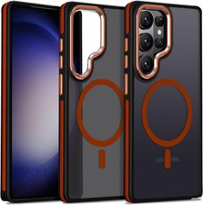 Case for Samsung Galaxy S26 Ultra, Translucent Matte Cover Compatible with Magsafe, Military Grade Drop Resistant, Color Hybrid Non-Slip Phone Case for Galaxy S26 Ultra (Black/Orange). Matte translucent back showcases the phone's original color.