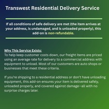 For Transwest Auto Parts Residential Freight orders only. Liftgate Service Included – Carrier will unload the item from the truck for you.