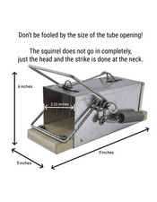 The product is a high-quality squirrel trap specifically designed for big squirrels to small chipmunks. measuring 11 inches in length, 5 inches in width, and 6 inches in height. Made of metal, this trap is durable and effective for capturing squirrels in outdoor settings. It is a reliable method for controlling pest squirrels in yards and gardens. The trap is not electric and comes with one piece, making it easy to set up and use. Its gray color and sturdy construction make it a practical choice for dealing with squirrel problems in a humane and efficient manner.