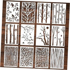Tree Texture Stencils Painting, 12 Pcs Tree Branches Stencils for tree