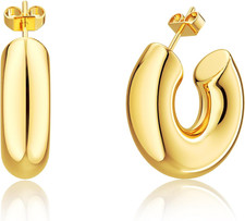 These beautiful earrings are 14K gold plated and have a chunky open hoop design that's perfect for adding a touch of elegance to any outfit. With their hypoallergenic gold plating, chunky open hoop design, and lightweight construction, they are the perfect addition to any jewelry collection.
